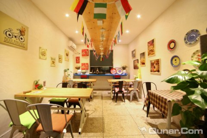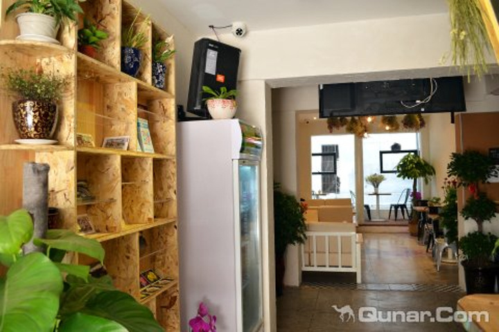 内部设有书架,酒吧柜台,还有文艺展览区等