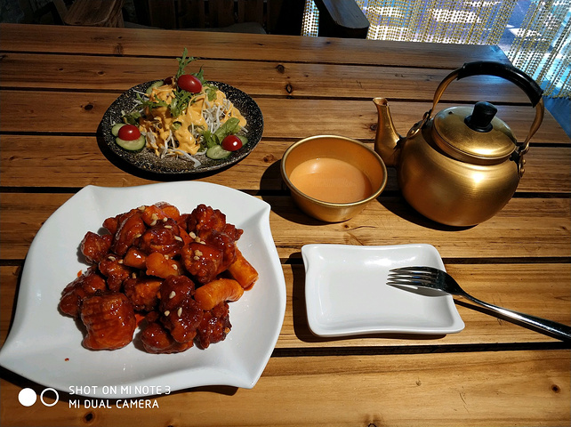 点了半份大酱炸鸡40元和小壶草莓米酒20元,店家送了一份沙拉,看着就有食欲呢。如果人多大众点评有团购,可以好几种口味半份拼这样就都可以尝到。