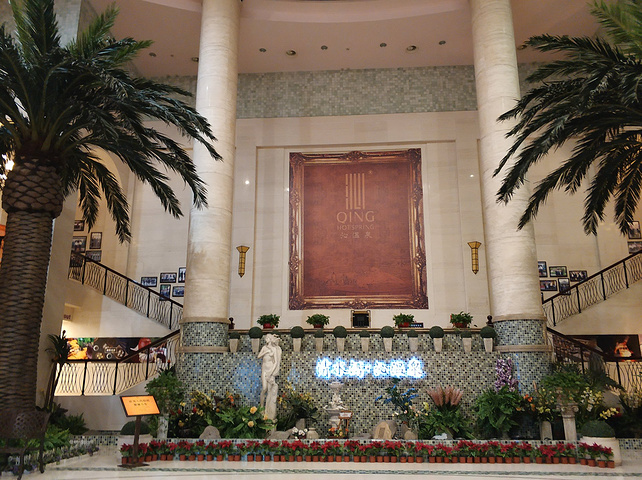 温泉宫的大堂很大气,男女更衣室在楼上,分开两边。