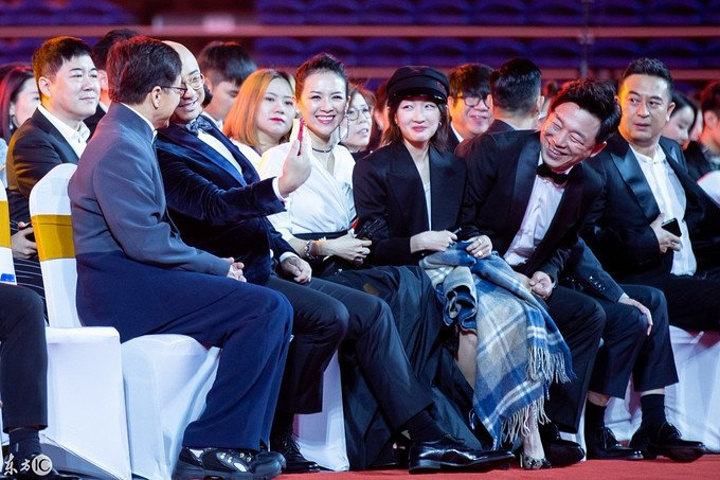 获奖后徐峥拿起章子怡的手机开始给大家自拍。