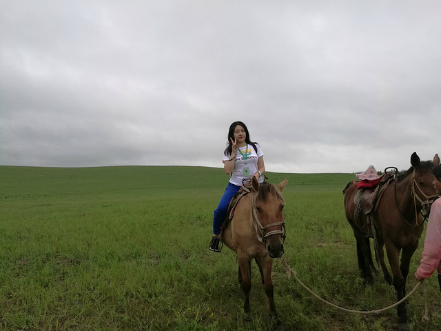 这是我第一次来草原,也是我第一次骑马,虽然只是有人牵着马走了两圈,但是体验相当好,有点喜欢骑马了,就是马场的气味。。。不怎么强气。。。