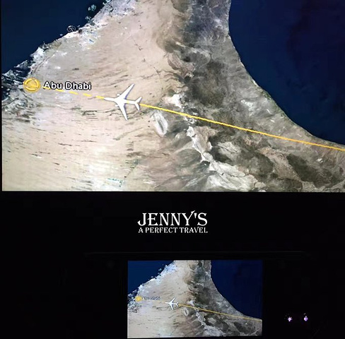 阿航的staff一声good morning,有点恍如隔世。睡意袭来,机舱中的灯光昏暗,时断时续地睡去。浑浑噩噩中,查看了飞行情况,在屏幕上已经能朦胧的看到 阿布扎比 的海岸线。