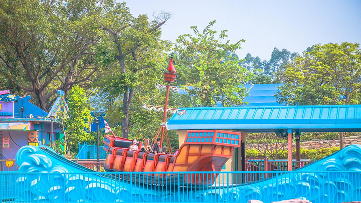 【激浪旋艇】刺激指数★★ 推荐指数★★★垂直过山车的旁边还有着激浪旋艇,和海浪一起嬉戏,一波大浪迎面而来,小船被抛向浪尖,再来一个180°转弯,在海浪中感受游船跌宕起伏的身影,相比于之前的运动还是比较轻松活泼的哦~来自游记中秋前的撒欢,欢脱玩乐在长隆