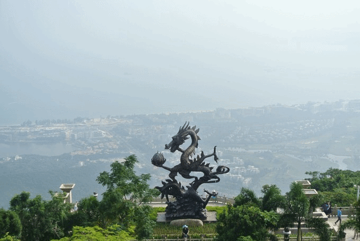 在山顶可以俯瞰 亚龙湾 ,但是我们去的那天天气病不好,感觉有些灰蒙蒙的,看不太清楚,难道 三亚也有雾霾?
