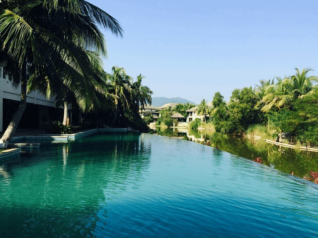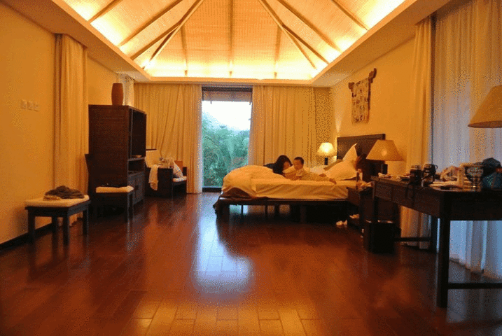 酒店的公共泳池很小,基本没有住客在这里游泳,因为别墅里都有单独的泳池。而且离海边很近,穿过天域酒店就到五号度假别墅酒店的专属沙滩了。由于玩了一下午,小扣子又睡觉了,本来还想去第一市场吃海鲜的,算了,趁扣子睡觉我们把行李整理了一下,洗了个澡,熟悉了一下酒店里的设施。酒店没有预期好,主要是旧了点,但是空间大,私密性较好,没有别的住客打扰。
