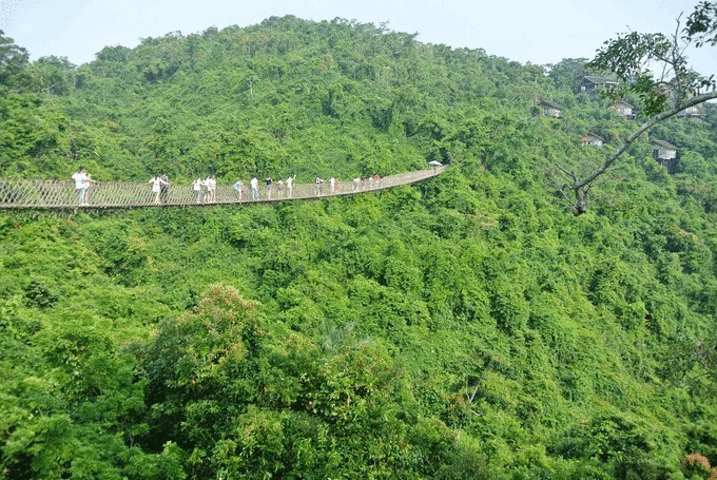 这桥就是拍《非诚勿扰2》里舒淇走的那座桥,抱着扣子不能走了,走过去20元,可以体验一下,山上的房子就是鸟巢酒店了。进入 亚龙湾 热带天堂森林公园的第一个景点是兰花谷,没什么特别的,也没有热带雨林的感觉,这里名气更大的可能就是与非诚勿扰有关的这两个景点了,另一处就是电影里的试婚房,与这座桥同理,另外收费,怎么说好呢?这就是我们国家景点的特色