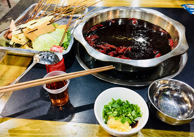 酒店办理完入住,想着还没吃晚饭,于是就出来寻食了!结果发现这家串串🍢!是自助的,自己随便拿餐,一串只需要4毛钱荤素都一样哦,另外一小盘的可能要贵一些,比如十几块钱的!反正我吃完总共消费50¥不到!