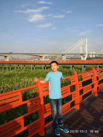 夕阳下,身后是武汉二桥