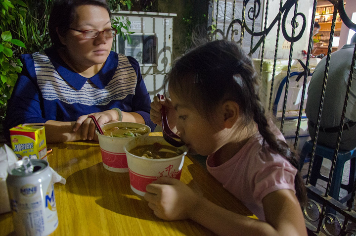 沙茶面味道非常好。老板生意太好了,位置都满了。我们都座到教堂里边吃。