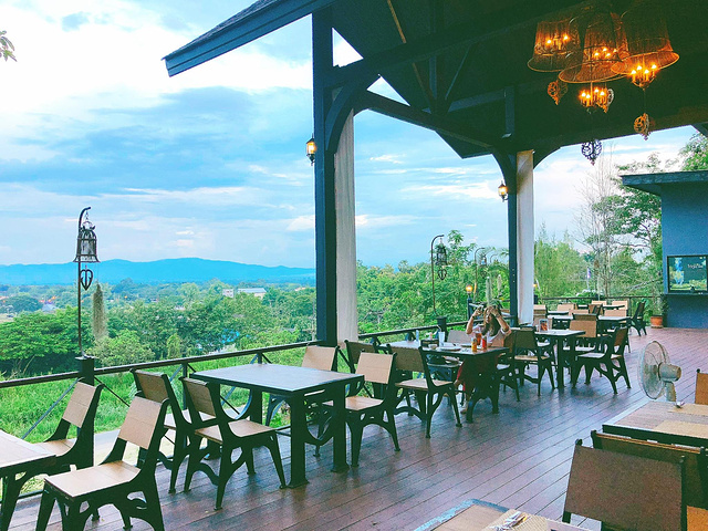 这家餐厅叫Rabieng Na Maerim,这名字还是我回家后在点评网上找半天才找到的。它建在半山腰上,远远望去,还真的很不错。我心里想:这环境这么好,价格应该也不低吧。但是 中国 人嘛,来都来了,那就去看看吧。再说了 清迈 这个地方,再高档的餐厅人均100多人民币也差不多了。