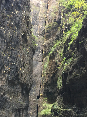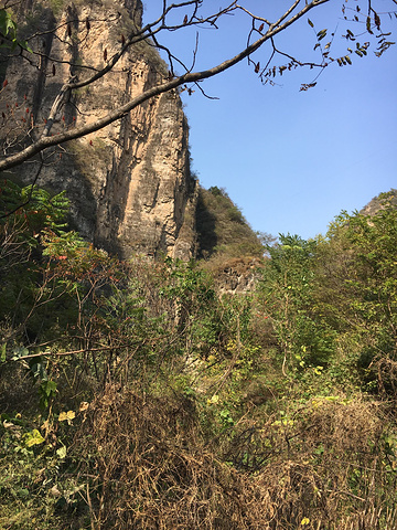 我们自海棠峡进入,然后从三千阶栈道先上后下进入十悬峡,从十悬峡返回景区,全程徒步用时四个多小时,体力消耗挺大。海棠峡与十悬峡地貌非常相似,相对而言,海棠峡要陡一些,需要走的台阶多一些。百里峡是典型的高山峡谷,有的地方只容一个人通过,一夫当关,万夫莫开,既使是中午,峡谷中也很少见到阳光,峡谷中深幽险奇,一边是顺势流下的潺潺流水,夏季一定非常凉爽;冬季若游人少时,则颇有孤凉寂寞之感;中秋季节,两边峭壁上的独叶草已经黄了,山石更显沧桑、枯峻。