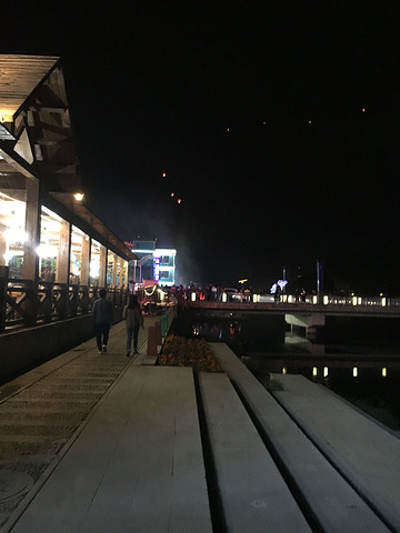 从景区出来,我们开车来到拒马河对面的艺术小镇,艺术小镇的居民基本都从事餐饮和宾馆服务,住宿、吃饭都非常方便,我们在拒马河桥头正好遇到一位朴实的少妇揽客,便先去看房子,150元一晚房间挺新没有异味,就住了下来。山里的天黑得格外早,放下行李出来时,小镇上已经华灯璀璨,不少人在河边放起孔明灯,小镇中心是一个广场,广场往上是火车站,从北京西发来的火车两个多小时就到达百里峡,广场充满艺术气息,贯穿古今中西,酒馆、拉洋片、纪念馆等等,为游人增添了夜生活趣味。