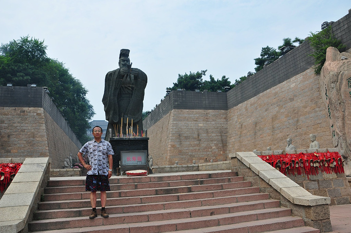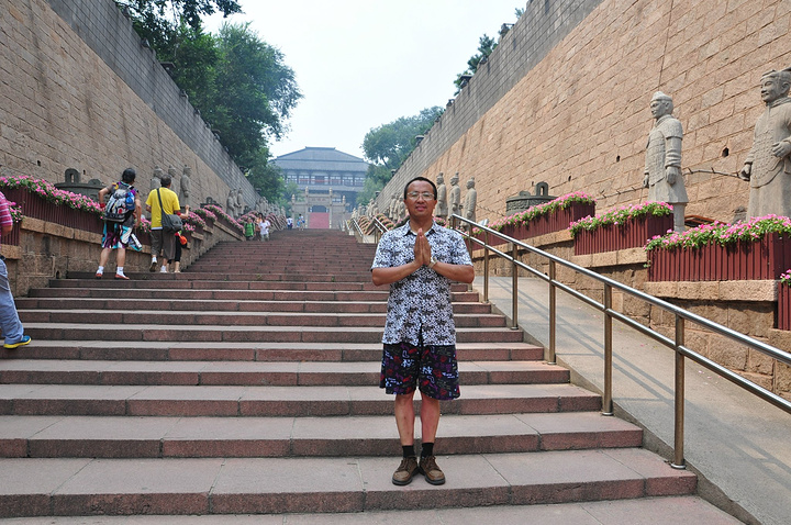 公元前221年秦始皇统一中国后,曾先后五次出巡,其中公元前215年第三次东巡到碣石,派燕人卢生求羡门高誓,命大臣李斯刻“竭石门辞”,即矗立海边的喝石刻石。重刻的稿石系采用花岗岩自然石块,高约5.1米,宽2.9米,厚2米。始皇一生喜爱巡游,在他统治全国后的十余年里;曾五次出巡“亲巡天下,周览远方”。秦始皇每次出巡时,都有隆重的车仗和庞大的车队,场面非常壮观,现在大家所看到的这组群雕以秦始皇出巡时声势浩大的历史场面,用生动、形象的始皇像、车马及人物造型,再现了秦始皇华夏一统,千古一帝的风采,它是由32个人、20匹马、2辆车组成的,此群雕长40米、宽5米、高6.6米,是景区继秦始皇巨型雕像之后的又一个标志性建筑。求仙苑内百草丛生,百花争艳,古碑林立;秦皇井、祈寿亭、升仙台等源于美丽、神奇的传说;望海长廊是为秦皇求仙入海的童男童女的亲人眺望、祈盼的场所;凄美的历史让人回味。配以碧清的湖水,白色的亭廊,构成了一幅水陆相连的美丽图画。阙门产生于西周时期,秦汉时代在城门、宫殿前或祠庙前都建有阙门。据说阙门是“天子号令赏罚所由出也”,也就是悬挂法令、布告用以昭示国人的地方,而祠庙、居室前的阔是“装饰、别尊卑”,就是说:阙是一种标志,表明宫殿、居室、神祠及坟墓的范围,人臣到此必须肃然起敬。