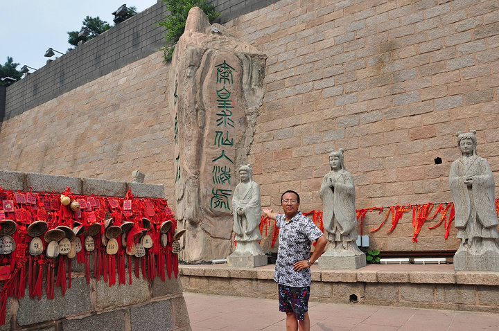 仙人祠分山门、正殿和东西配殿。山门塑有哼哈二将;正殿和配殿分别塑有东王公、西王母、福神、禄神、财神、寿神和求仙的卢生、徐福、韩终、侯公、石生几位方士。因祠内有仙也有人,合称‘仙人祠”。秦始皇统一六国以后,自称始皇帝,希望二世、三世……以至万世永远流传下去,他想永远统治中国,于是派遣许多方士漂洋过海,寻求长生不死的仙药,这些方士有的到了日本、韩国,也有的下落不明。仙人祠就是为这些方士修建的祠堂,以纪念他们为中、日、韩三国在经济、文化等方面做出的巨大贡献。