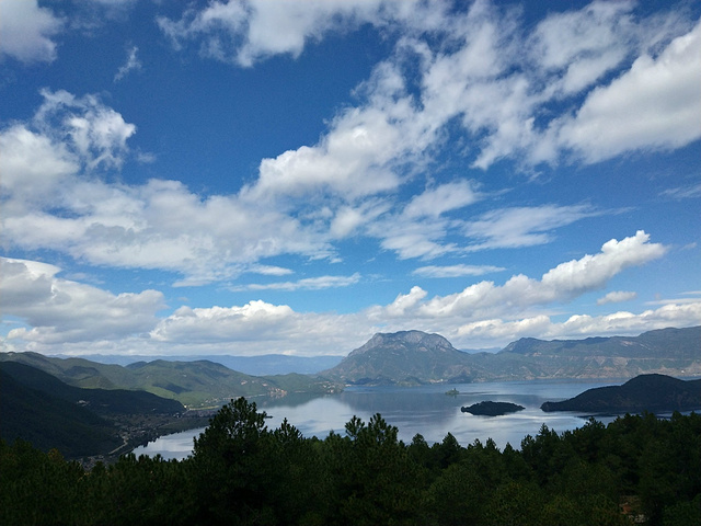 不一会儿,就看到泸沽湖了,中途停了一次车,让我们拍照~~