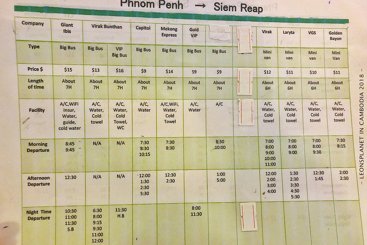 另外,坐夜巴最好选择晚一点的车次, 比如 12点出发6点钟到的(虽然车次表上写着的是7小时,但通常会提前1小时到),不然你凌晨四五点钟到了 暹粒 ,无法入住酒店,想补个觉都没办法,而想直接出去玩精神又不济,如此就陷入非常尴尬的境地了。