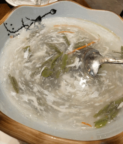 这碗太湖莼菜银鱼羹,真是营养美味,鲜滑可口。