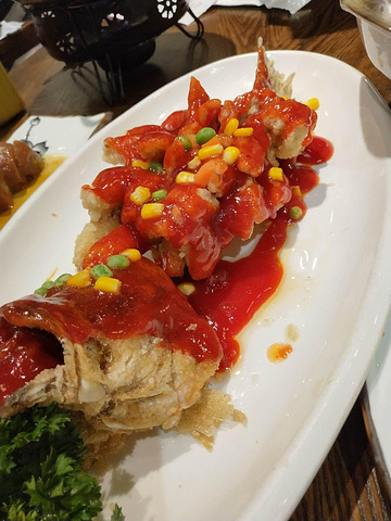 首先名气太大,乾隆帝称赞过,炸过的鱼形状像松鼠,随即浇上热气腾腾的卤汁,这“松鼠”便吱吱地“叫”起来,以番茄酱为主,酸酸甜甜爽口开胃。