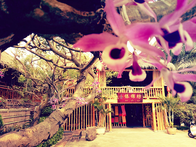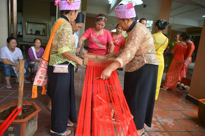 茶楼下是傣家文化特别浓郁的傣锦坊,傣族织锦的传承人雷安坐大姐在里面织着织锦,织机的纺线穿梭声仿佛也在向世人诉说着傣族人民千年优秀的文明。