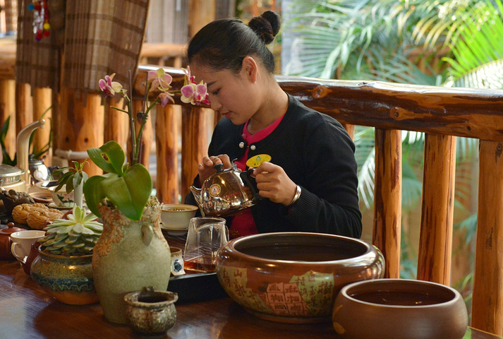 庄园的最西端,还有着百米竹林小道,在小哥的带领下,来到了小镇茶楼。小镇茶楼位于竹林小道下,优雅的环境在竹林的映衬下尽显傣家人独有的竹楼气息。