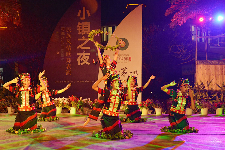 “小镇之夜”位于整个小镇的正门中心口,每晚都有大量的游客及本地居民相聚于此,就为等待着“小镇之夜”大型民族歌舞展演的开始。