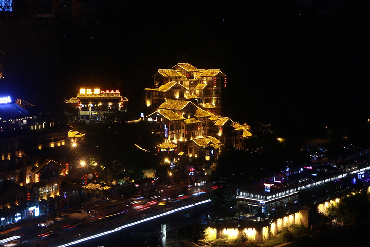 错过了博物馆,我们打的回到青旅(只要12块打的费)洗漱了一遍,美美睡上一觉,晚上开始新的任务。通行的小伙伴下午有些轻微中暑,所以晚上我自己一个人出动,步行走过千厮门大桥,来到洪崖洞的对岸,我要看倒映在水里的你。灯火阑珊处的洪崖洞,是另一种美,置身于大都市的流光溢彩中,他也变得年轻有活力起来,隐隐约约听到对面传来的声音:你会不会突然的出现,在街角的咖啡店,我会带着笑脸,挥手寒暄,和你坐着聊聊天……我喜欢这首歌,就像喜欢现在的美景一样。