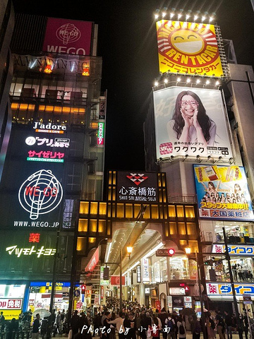 在道顿堀戎桥上可以看到两块有近百年历史的“雪印”和“格力高跑步者”招牌,是心斋桥的一大标志,记得要合影哦《半泽直树》等日剧也曾在这取景。每到夜晚,五彩缤纷的霓虹灯和闪动的广告牌让这里充满了无限的活力。