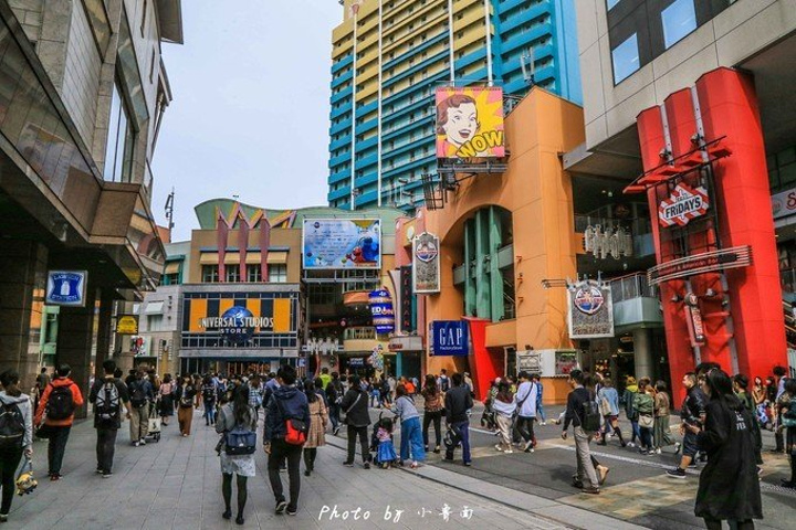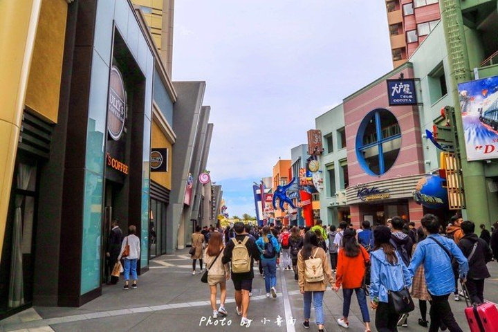 出了车站沿着这条商业街步行几分钟就走到环球影城入口了,这里也有很多餐厅和商场。