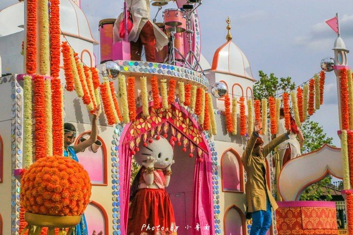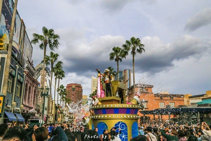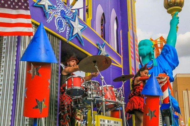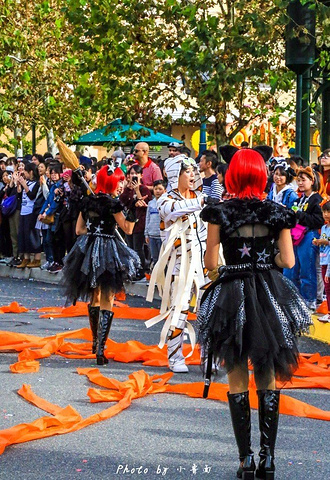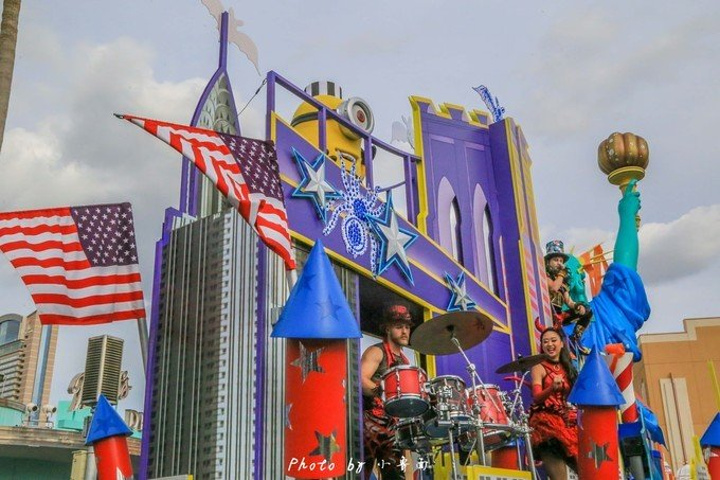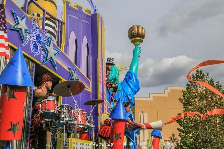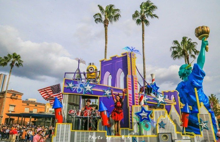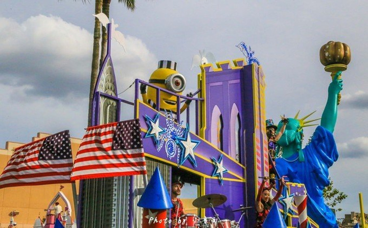 从哈利·波特的魔法世界出来刚好赶上下午两点多的花车游行,现场气氛相当火爆。