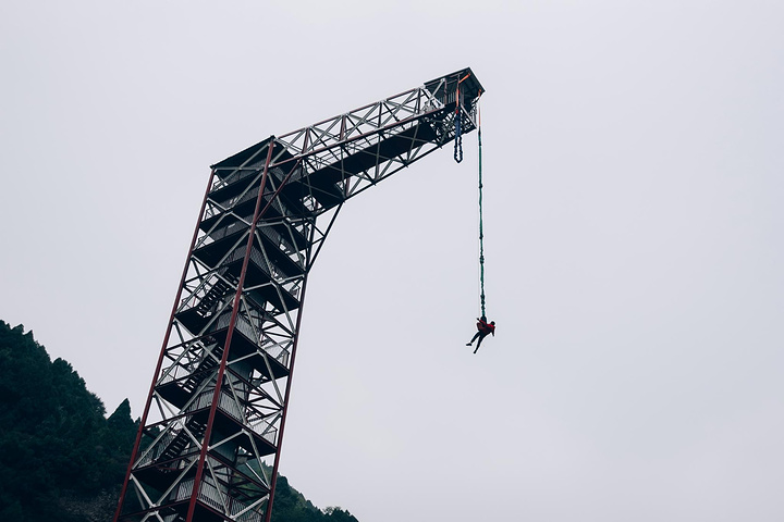 国内的蹦极一般都是绑腰的,跟国外绑腿的不太同,这里的蹦极高达46米,来体验一下倒是一个很好的减压方式。