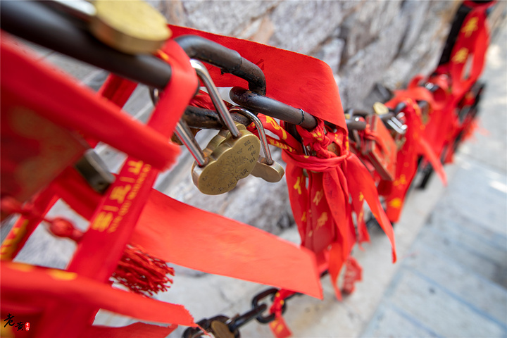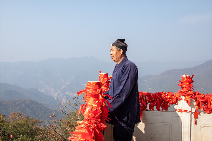 玉皇顶,这里还是祈福的好地方。先不说这里是道教文化昌盛之地,就说这地势,就很有感觉。你要经过一番辛苦才能登顶,而且在顶峰你可以一览众山小。你能瞬间体会到一种霸气,这是居高临下者惯有的。在阁楼的阶梯处,你可以看到铁链扶手之上有很多祈福用的红丝带和金锁。在接近天际的地方,祈福更有意义。而且这玉皇顶供奉玉皇大帝,这也是让很多人不辞辛苦,登顶膜拜的一个原因!