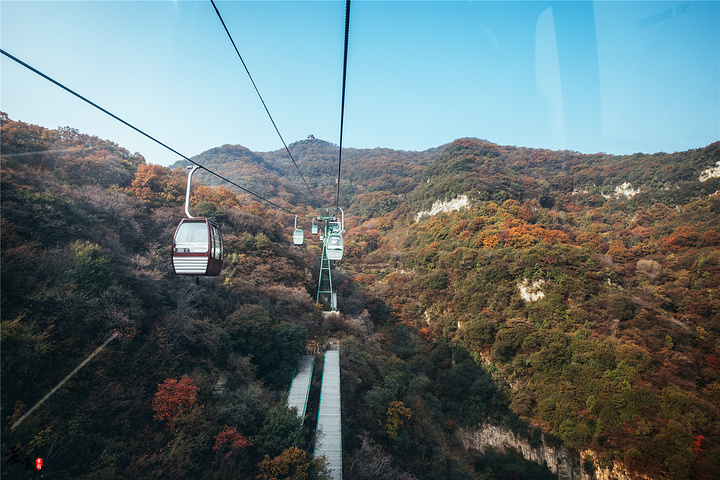 虽说玉皇顶海拔并不算高,但上山之路也是经历波折。景区内有上山缆车,多少能减轻疲感,但整个索道很长且陡,足足要坐二十几分钟,全长1314米,象征一生一世。其中不乏悬崖峭壁,相必这一生一世也是要经历曲折苦难才能到达。这条索道素有“云丘项链”的美名,索道线就像是项链线,而那一辆辆缆车就像是线上的一颗颗珍珠。在加上这条索道线的长度,这条索道线被很多游客戏称为“爱情索道”。索道并不是直通山顶,下索道之后还要再爬大约40分钟的山路,虽说道路被修缮过,路况不是太糟,但也不易,就像古人成仙之路,道阻且长,而这一点也跟本算不了什么!