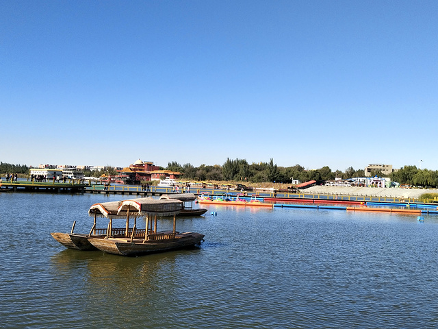 早晨吃完早餐后退房,我们开车约半小时到达包头南海湿地公园,门票免费。公园很大,湖水清澈,水上有游船等娱乐设施可以玩。也许是早晨的缘故人很少,清洁工在金黄色的树下拍照,几个中老年人在湖边打太极拳。
