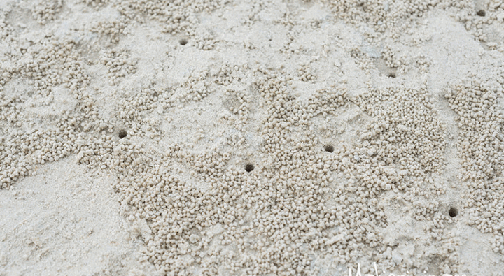 沙滩上有一个个的小洞,洞旁有一个个小沙球,猜猜这些是嘛?——沙蟹的家