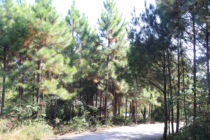 入口处的松树林笔直。