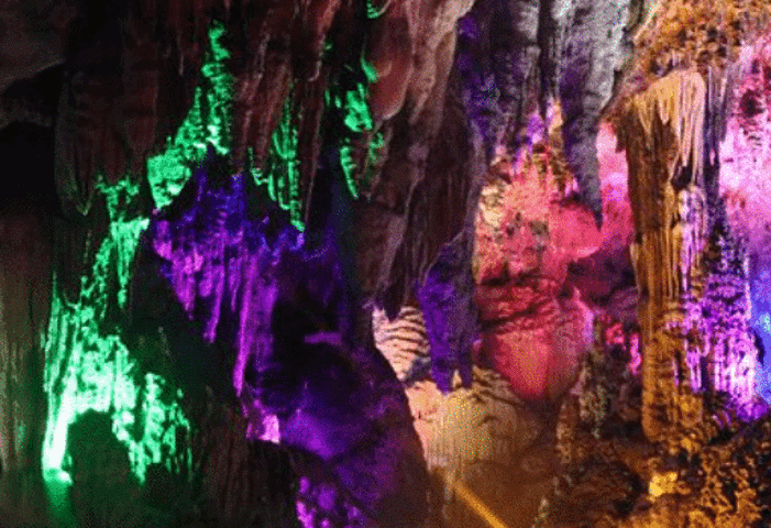 曾被徐霞客记入游记的紫霞岩更是不能错过的必备打卡之地!背后的石雕和脚下刻着的石碑洞穴里五光十色的灯光,让岩石看起来更加的古怪神秘,不禁好奇,千百年前,没有镁光灯的时候,徐霞客看到的又是怎样的一番景象呢?来自游记宁远之行