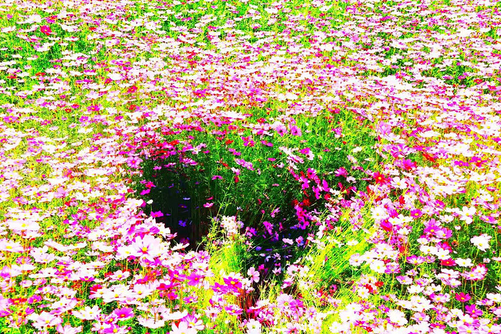 继续前进,左手边的一片粉红的色彩映入我眼帘。这片分红花海没有开始的艳红花海那么火热,却又散发着自己独特的温馨。