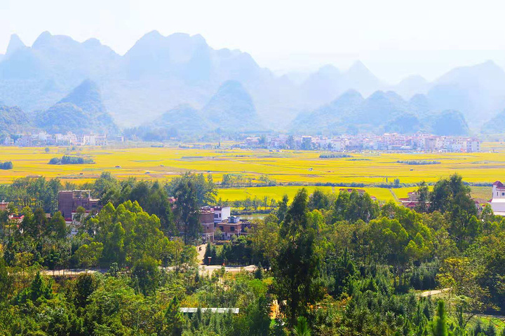 从紫霞岩的奇幻中醒来以后,笔者前往下一个目的地———十里画廊。在路上,本能性的举起手机只想随性一拍,却也是那么的迷人。远处朦胧的群山与近处的金黄麦田是那么的令人倾心。