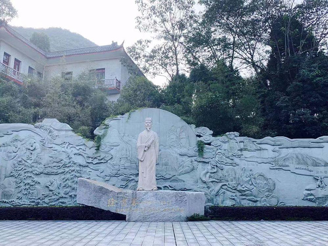 再往前一公里左右便到了宁远的标志性景区之一——紫霞岩。里面有大大小小的岩洞。然后我们进入紫霞岩,首先步入徐霞客广场,看到屹立在此的徐霞客雕像。徐霞客曾游历于此,并将紫霞岩列为楚南十二名洞之首。