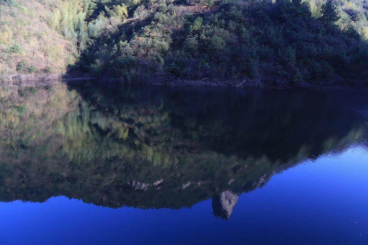 我们看向湖中的三分石显得格外“娇小”,清澈的湖水总是倒影着三分石。