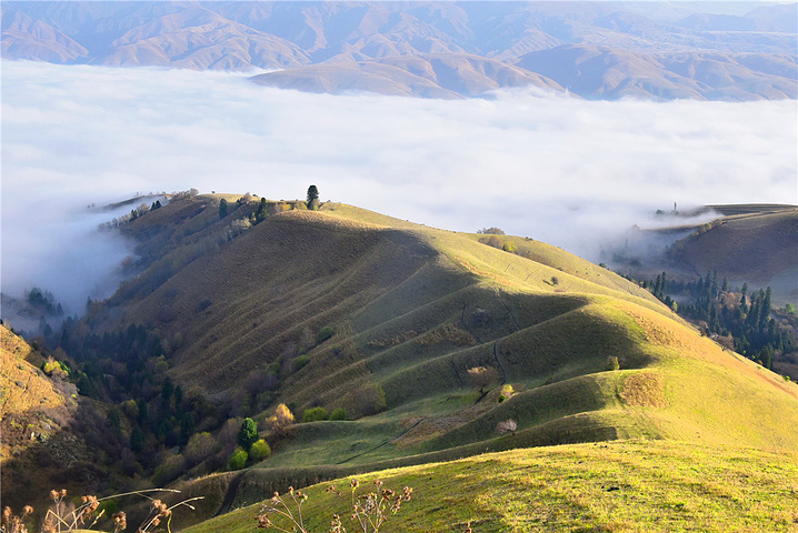 这次的云雾形成的云海景观更壮于平时,据说那拉提是草原上人们取得胜利会师祭拜苍天的地方,感谢上天赐予阳光、力量。人们透过云雾遥望着雪莲谷主峰,可以祈福平安,寻找久违的圣洁。来自游记去一次空中草原那拉提,带上最爱的人