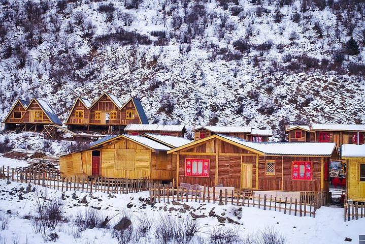 滑雪场内有成排的小木屋,有的是火锅店,有的是茶馆。是不是有一种东北雪乡的即视感?