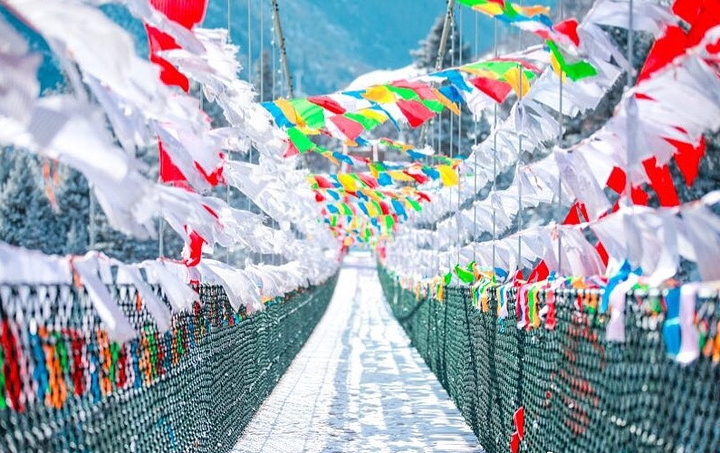 由于鹧鸪山位于阿坝州境内,景区内还有一座挂满经幡的吊桥,可以在这里祈求福运,消灾灭殃。
