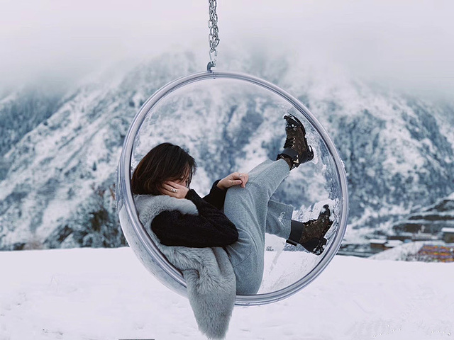 透明的泡泡吊床可不止云南有哦,四川也有~大雪纷飞的鹧鸪山给你当背景,还怕不能刷爆朋友圈吗?