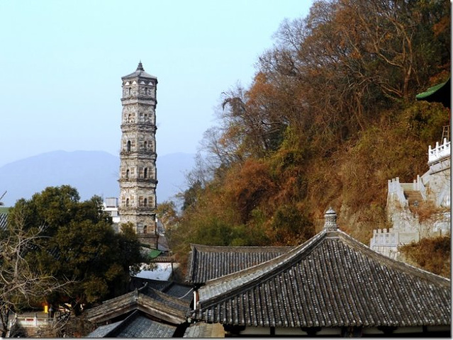 千佛塔 位于临海古城龙兴寺内,是浙江仅存的二座元塔之一,此塔的最大特点一是在塔身上装饰总数多达千尊的佛像砖,而且造型优美,工艺水平相当之高。二是各层平座采用石板出跳的建筑手法也是很罕见的,称得上是中国古塔中的精品和一绝。