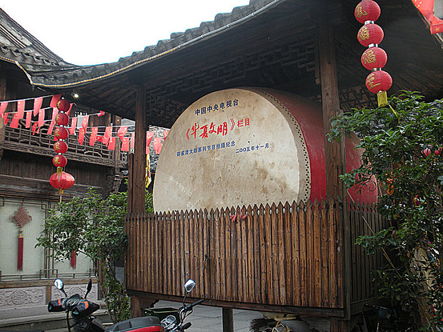 《华夏文明》 阳街的一个小亭楼中,还立有一面大鼓,重500公斤。它是中央电视台在这里拍摄《华夏文明》节目时留下的,作为紫阳街的太平鼓,庇佑着古街永远平安。