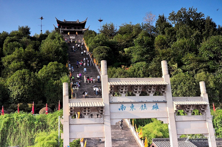 37.临海古城墙有着悠久的历史。自晋代开创以来,已有1600余年,迭经唐、宋、元、明、清诸朝不断修筑增扩,其主体部分一直保存到今天。古城墙沿江修筑而上,依山就势,逶迤曲折,雄险壮观。尤其是北固山一段,建于危崖之巅,飞舞盘旋,敌台林立,雉堞连云,城楼高峙,与北京八达岭相较,可称双绝 ,称之为“江南八达岭”,并不过誉。更有其独特之处是,临海古城墙两侧,古木参天,常年苍翠,城墙掩映在青绿丛中,更增添了一分灵秀。