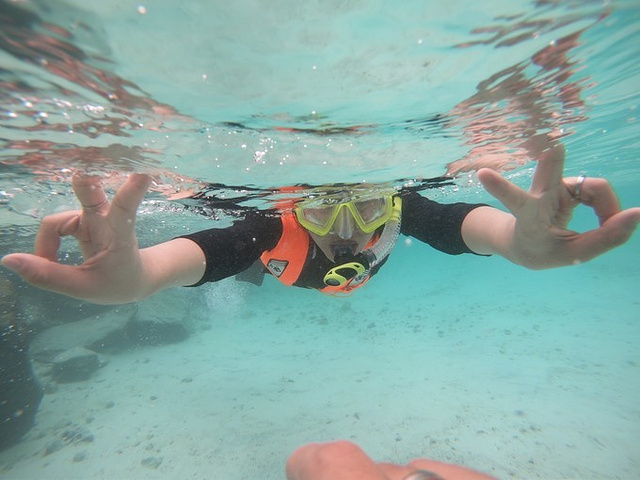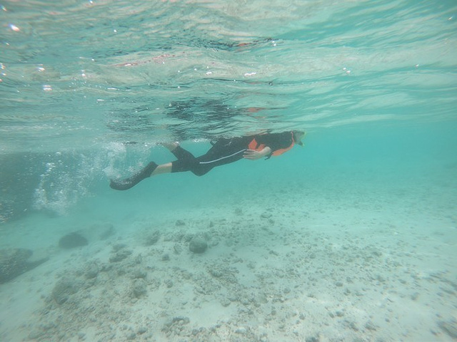 浮潜鞋(珊瑚硌脚,受伤不好,但是后面发现游不动,最好用脚蹼,可以岛上租,穿双袜子,脚蹼也很磨脚,沙子会进去)