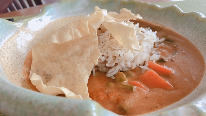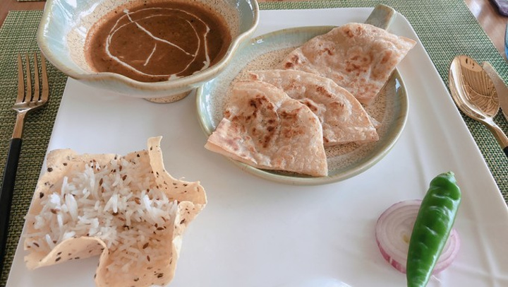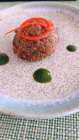 意犹未尽,决定吃了素食餐厅后,在餐厅旁边的泳池带上浮床继续玩~开始真的对素食餐厅不抱期待的,看了十篇游记十篇都在说难吃。中文菜单里面有四个组合,冲着甜点是菠萝冰淇淋就选了组合4,金老师选了组合3。,,(回来一个星期了再回忆那个味道会有点想不起来,但是并没有哪道菜难吃到说要逃走,可能是样式看起来奇怪影响了食欲?问了一起的狼人杀小伙伴们都是说可以吃,不难吃的,感觉我们几个人的评价可以为他正名了,本来还怕吃不饱要杀去主餐厅再吃一波,结果根本没有必要)