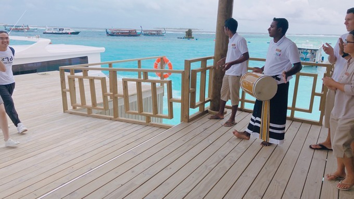 远远就看见岛上的工作人员站一排拍手打鼓🥁欢迎我们。